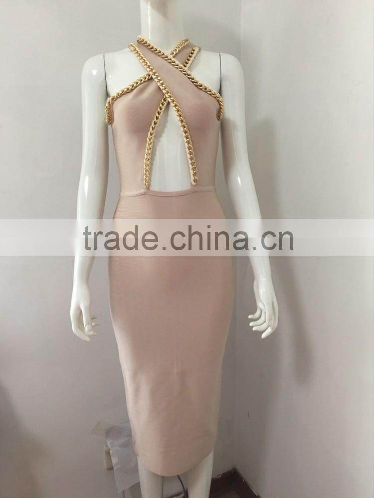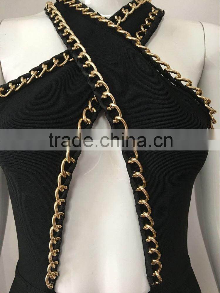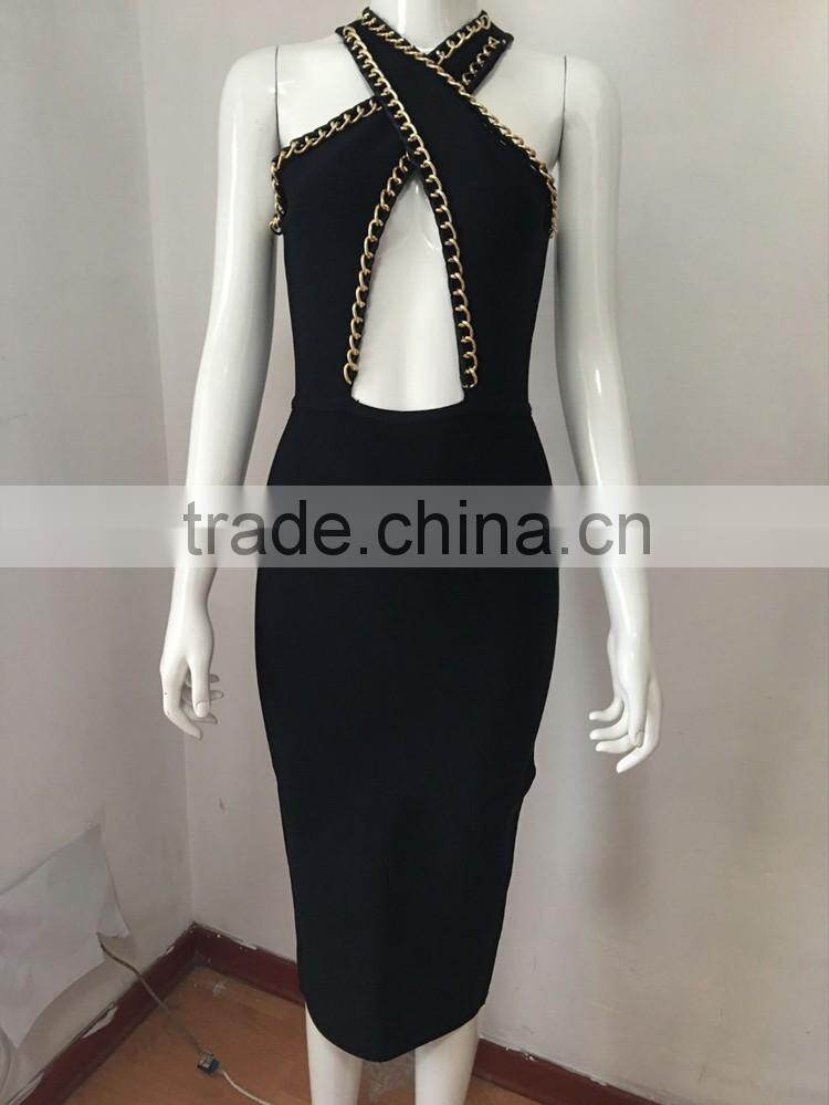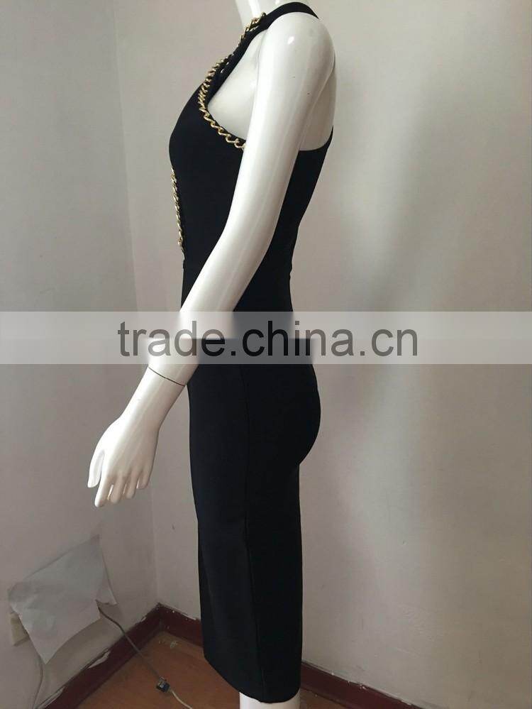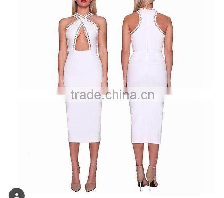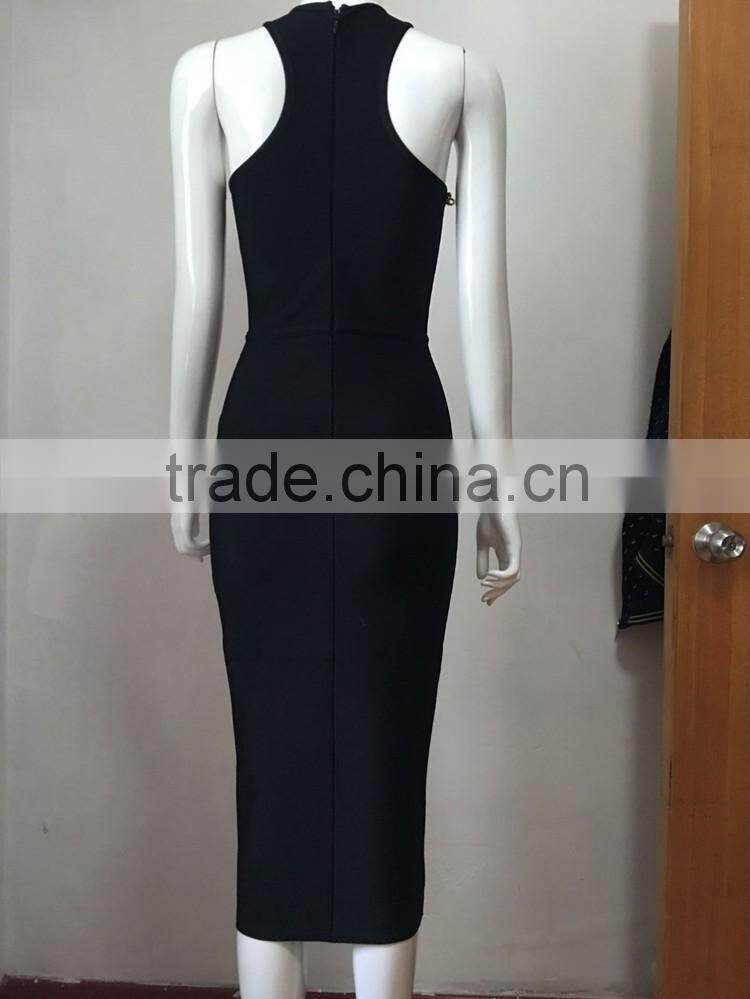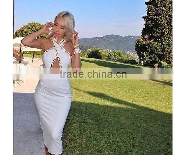 wholesale 2015 new black white sey deep V-neck beading bodycon elegant celebrity party pencil women knee-length bandage Dress