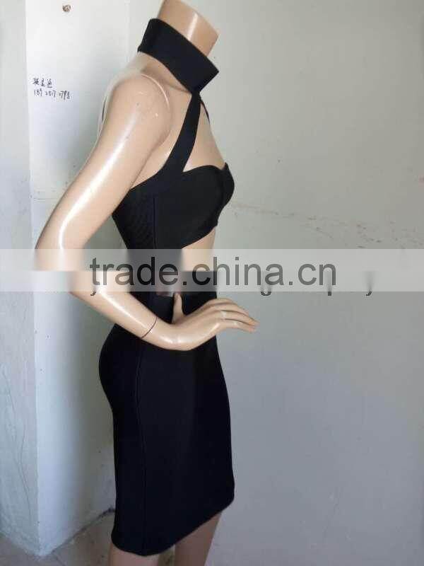 Summer Dress Wholesale Luury 2016 New Fashion Black High Neck Sey Women Evening Party Bandage Dress Bandage Bodycon Women Wearin