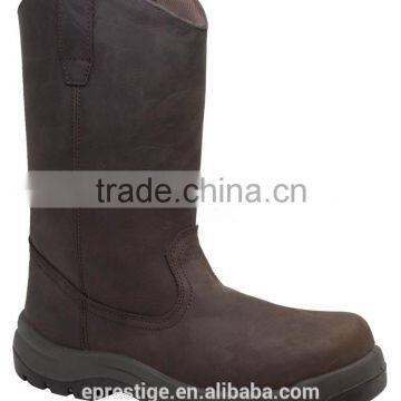 | Description | Leather safety wellington boots Dark brown color Nubuck leather upper Non-woven lining Removable cushion insole Injected double density PU sole Steel toe |
