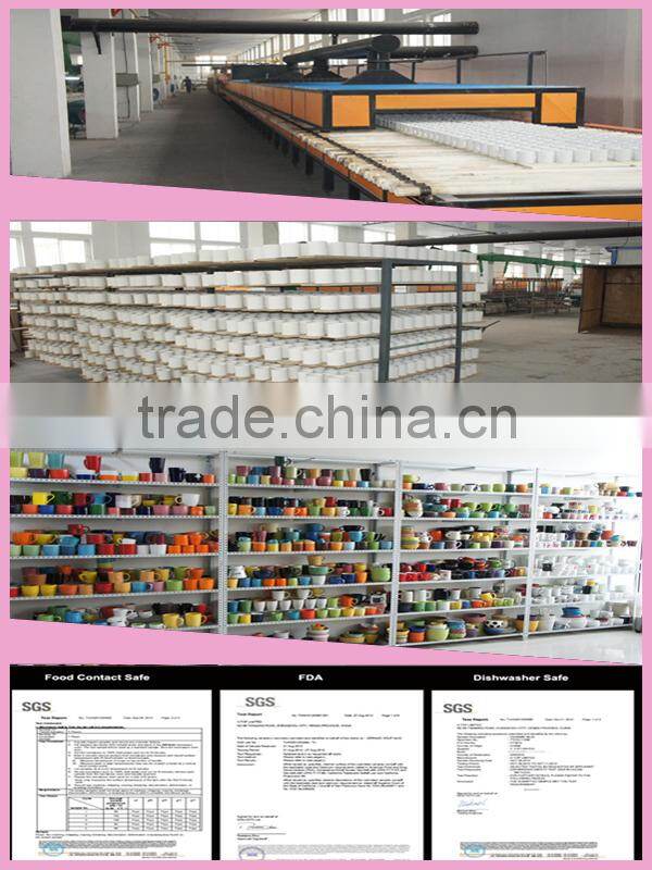 - We are specialized in stoneware and porcelain dinnerware, various coffee mugs, promotional mugs,premium mugs, customs mugs, gift mugs, customized mugs, personalized mugs, etc . And pasta set,pizza set,cake plate, and bakeware, ceramic flower pots etc.all our products can pass foot safe test as normal standard 84/500/EEC.And our products are microwave safe and dishwasher safe. We have dedicated ourselves into the chinaware trade ever since we were founded, so our products enjoy wide popularities and gain appreciation from our oversea customers. Our products are with good quality and delicate designs, especially in the European and American markets and also very popular in South American market.