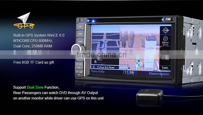 MTK3360 800MHz CPU, Dual Core, 256MB RAM, 1080P RMVB Video, support the newest 10-Band EQ, 3G WCDMA Internet, VMCD---Virtual 10 CD Changer, Bluetooth PB-Download and PB-Search, Steering Wheel Control, built-in 6 Games, Calculator, 102 Start Unit Logos, 10 preloaded wallpapers and can update user's wallpaper, show iPod/iPhone4/5/iPad playlists and play.
