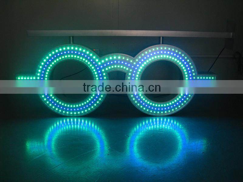 Hot selling led optic signs for glasses shop with infrared remote control led nameplate