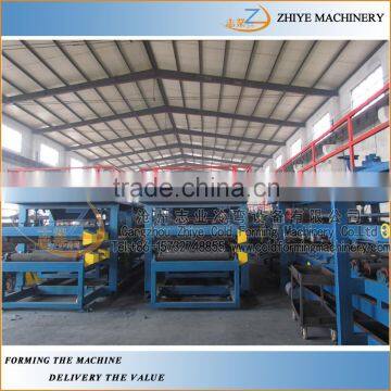 This line adopts advanced technique, which integrates gas, electricity and machinery, and this line is the special equipment for processing colored steel sandwich panel. Its working speed can be adjusted by frequency converter, and it can process sandwich panel at one time. The whole line consists of decoiler, molding core, compound part(knocking our the groove, glue instillment, heating, compound, rolling, grooving, finishing, air-powered, automatically cutting). It is a necessary equipment for producing industries factories, roof tile and wall panel of warehouse.