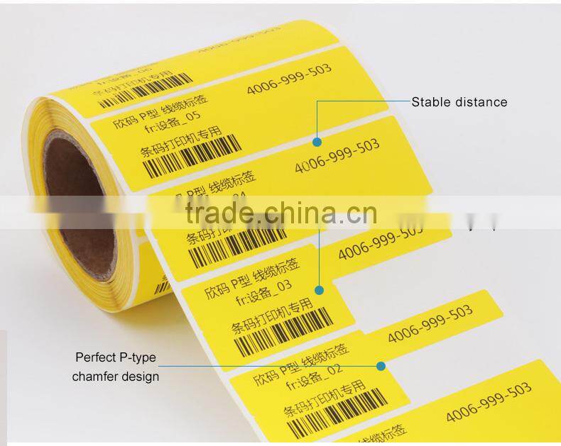SINMARK has the advantage of precise position and printing serialization.SIMARK put out package type P cable label which is especially used by barcode printer.Using high-quality FASSON synthetic code with resin matrix carbon, the conserving time can lasts more than 50 years.Double layout can save material and do better in economy.