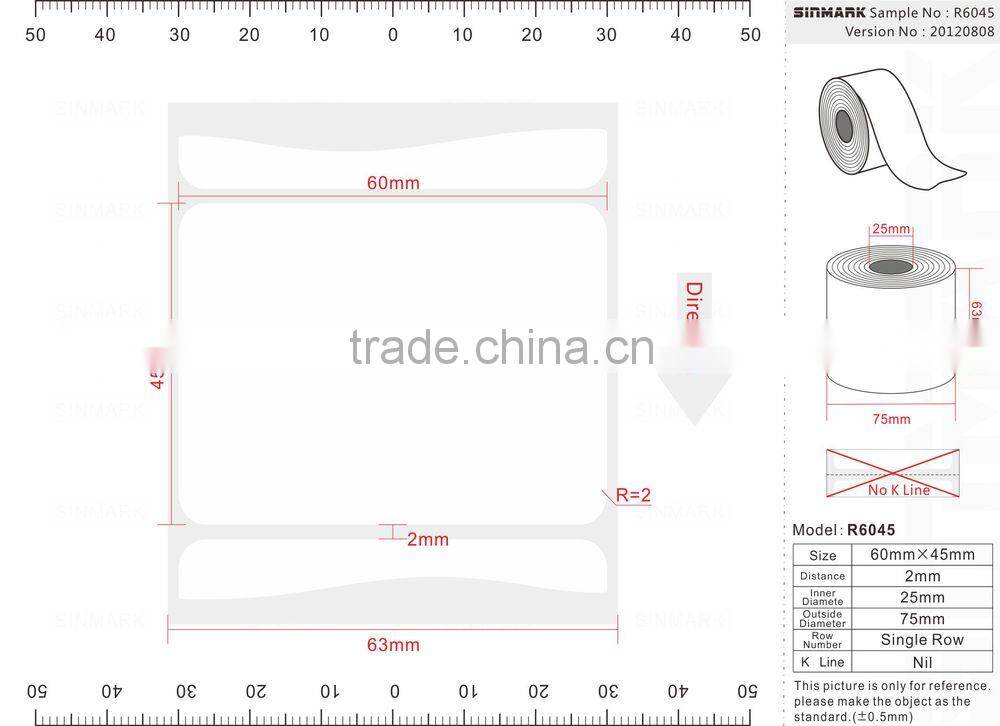 | Material | AVERY/FASSON Thermal Material |
