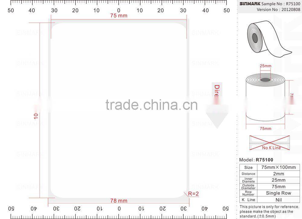 SINMARK R75100. N240 customizable self adhesive label paper