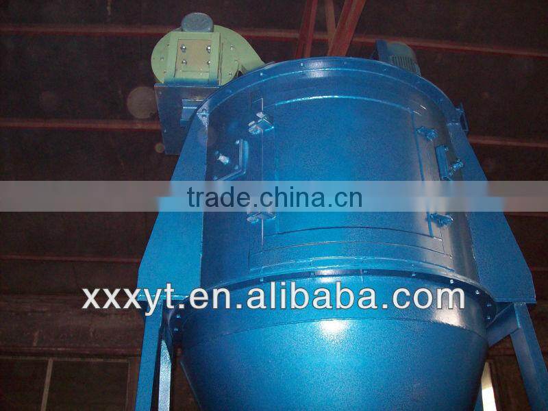 Principle: The rubber powder from reserve tank can be brought into separaor by lifting device, based on different weight of fiber and rubber powder, the rotating mechanism inside the separator makes them separated from each other, and they can be got from different discharge mechanism.