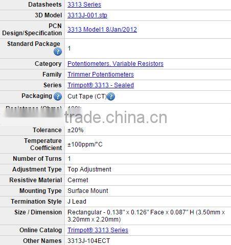 adjustable resistor potentiometer 3313J-1-104E TRIMMER 100K OHM 0.125W SMD