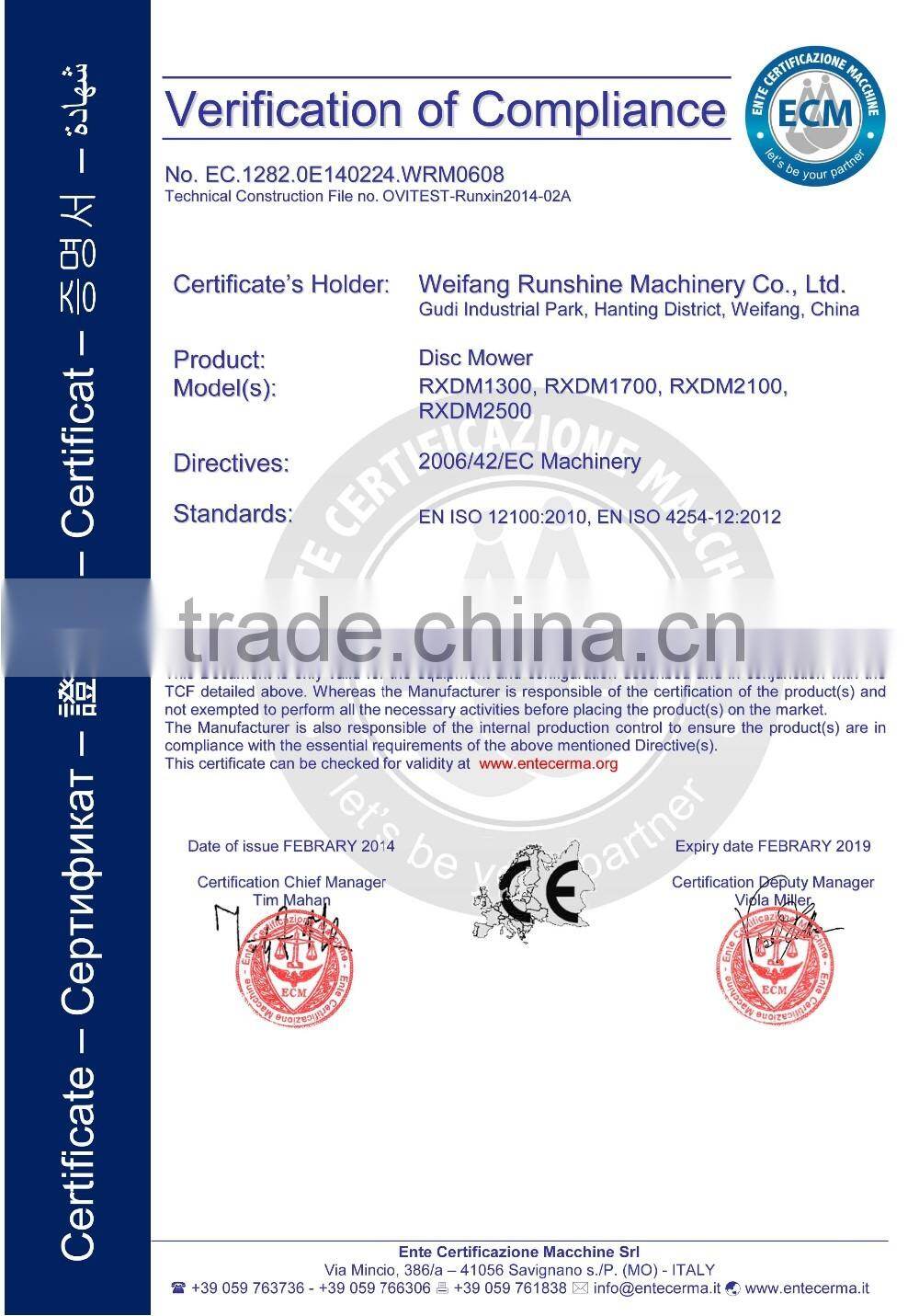 Runshine Since 1989 High Working Efficiency Tractor Disc Mower Quality Choice