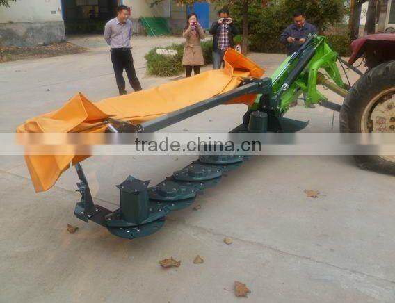 tractor disc mower suits for large and small pasture,high working efficiency,cuts through heavy,high crops without wrapping or plugging,as well as for light thin grass.it could work for wide range terrains and contours ,even uneven and rocky ground.