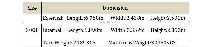 Dimensions: 20GP/40GP/40HC ( International Standard)