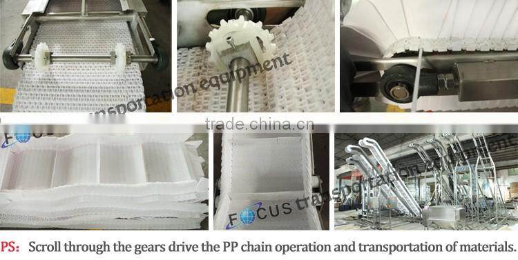 FM-3B3 Conveyor Application: Bucket Elevators are very well suited for a broad range of free flowing products in the food, agriculture, pharmaceutical, cosmetic, chemical industry, .such as snack foods, frozen foods, vegetales, fruits, confectionary. Chemicals and other granules.