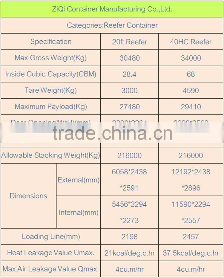 20ft GP/40ft HC HQ reefer container