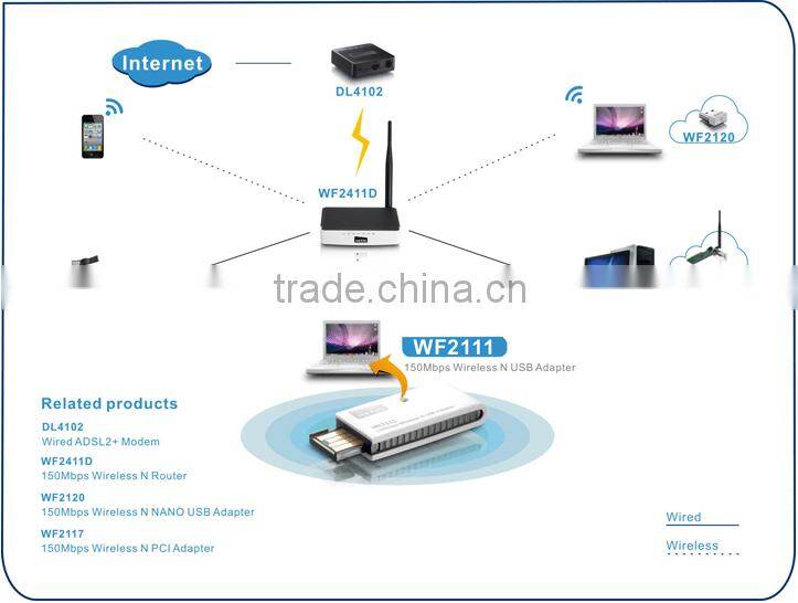 The netis WF2111 150Mbps Wireless N USB Adapter is designed to connect a desktop or notebook computer to a wireless network and access high-speed Internet connection. It's compatible with 802.11b/g/n devices and provides the wireless transfer speed up to 150Mbps, offering a better performance on web surfing, emailing, file sharing, and online chatting. Moreover, it features with a WPS button which helps you easily setup a secure wireless connection in a snap.