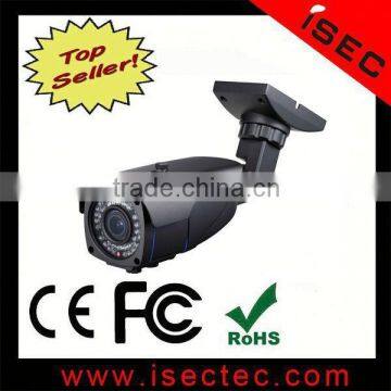 Waterproof IR camera 2.8-12mm 2MP manual zoom lens 6-15, 9-22mm 2MP lens optional 42pcs Ø5mm IR LEDs IR distance:40m 0lux with IR on waterproof:IP66 1.3kg |
