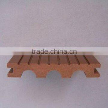 This type of WPC profile with two sides groove designing for slip resistance, can be used as floor board, be installed on the outdoor ground, trestle road and garden path, and perform outstanding superiority in the outdoor decking of courtyard, park, garden community, waterscape, seashore path or gazebo, trestle and plank road, dock, etc