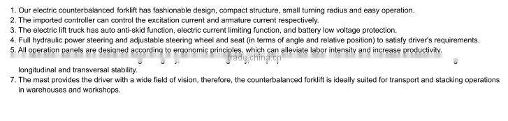 Best Price 1.6 T 1.8T 2T 2.5T 3T Electric Forklift Trucks for Sale