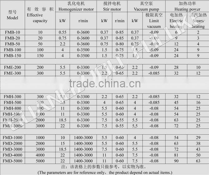 1. To tie in with the manufactures need.FMB emulsifying machine series form mass production to small laboratory test.