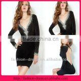 New Sexy Backless V-neck Beaded Short Cocktail Dress With Sleeves