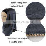 Softy Strechy Cotton Jersey Hijab Muslim Long Scarf Islamic Shawl Wrap With Chain