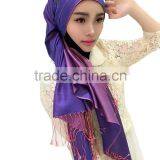 Fashion 2015 Two Sided Color Long Muslim Lady' Scarf Fringe