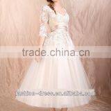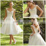 Beautiful Organza Beaded A-Line V-neck Tea Length White Wedding Dress
