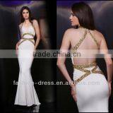 2014 New Arrival Mermaid White Beaded Evening Gown Dress