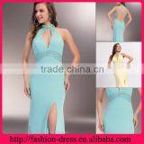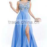 Shealth High Neck Floor Length Open Back Chiffon With Beaded Side Slit Empire Waist High Neck Evening Dresses
