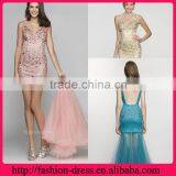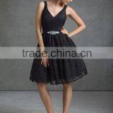 Elegant V-neckline and Backstyle Over Lace Satin Beaded Sash Latest Evening Short Dresses