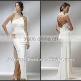 One Shoulder Low Back High Slit White Sexy Evening Dress