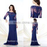 Latest Covered Back Long Sleeve Chiffon Royal Blue Mother Of The Bride Dress