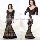 New Elegant Long Sleeve Mermaid Black Mother Of Bride Lace Dresses
