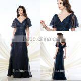 2014 Latest Chiffon Over Sequins Navy Blue Mother Of The Bride Evening Dresses