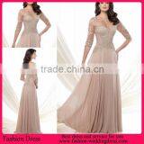 Hot Sale Elegant Covered Back Champagne Mother Of The Bride Dress With Jacket