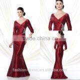 Long Sleeve Burgundy Taffeta Mother Of The Bride Dresses 2014