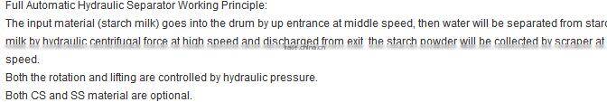 Full Automatic Hydraulic Separator for Starch Separation Max 400kg Loading Each Time 18.5kw Motor 900 R/min Max