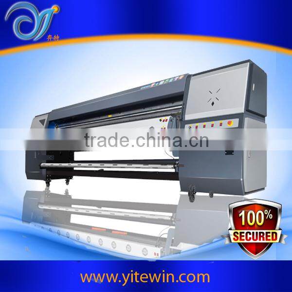 Adopt Konica company the latest 1024I water based print head, Its unique high speed technology can achieve higher productivity, higher nozzle density makes the printings more accurate and colour more gorgeous, the ink optimization design achieved the higher printing stability.