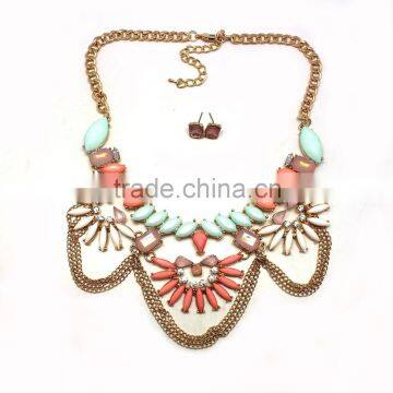 Fashion Necklace And Earring Set 2015 Acrylic Stones Casting Charms And Chains Choker Necklace New Gold Jewelry