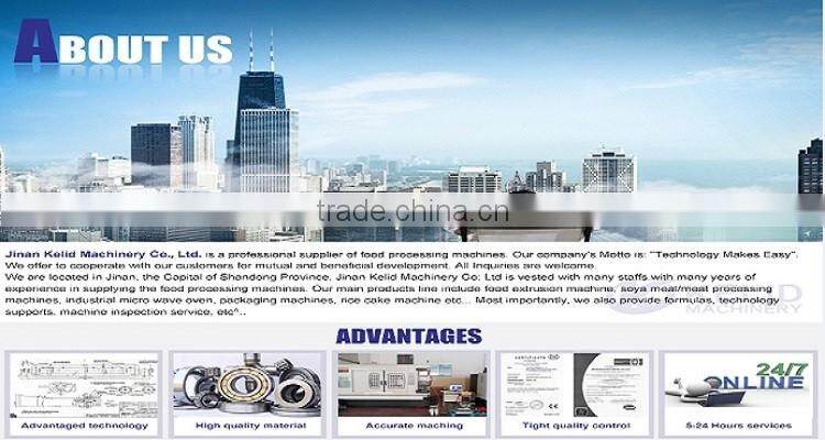 We have through the years established good working relationship with some reputable organizations both at home and abroad with outstanding goodwill.Our main products line include food extrusion machine, soya meal/meat processing machines, industrial micro wave oven, packaging machines, rice cake machine etc. Most importantly, we also provide formulas, technology supports, machine inspection service, etc.