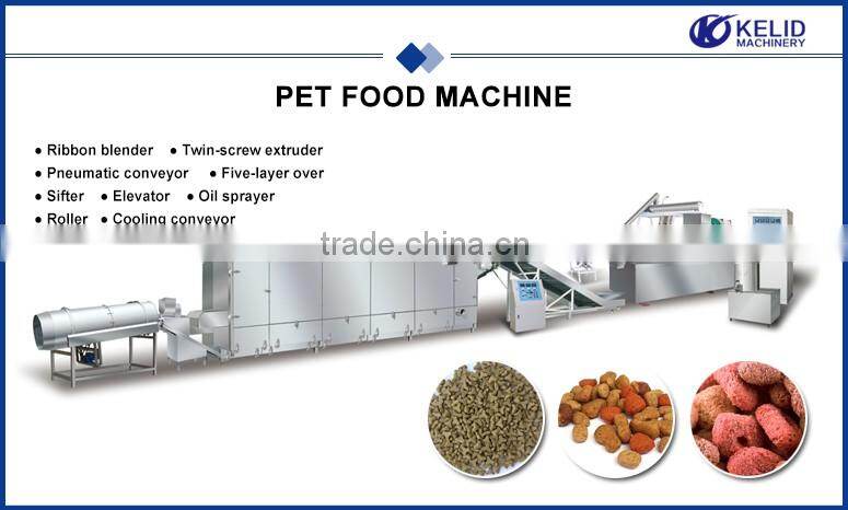 Fully automatic dry pet food feed machine is developed and improved by Jinan Kelid Machinery Co., Ltd. According to the international market. This line can be adjusted to produce various shapes of pet food for cat, dog, fish, shrimp, bird and so on. It has many production capacities to choose according to your specific requirements. High automatic, easy operation, stable performance, easy maintenance and wide range of materials are the main features of this line. This line adopts bone powder, fish meal, corn power and so on as raw materials. The final feed is nutritional, multi-shape, attractive, highly digestible which can be loved by your pet and fish..