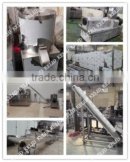Our main products line include snack food extrusion machine, fish feed processing line, pet food processing line, soya meal/meat processing machines, industrial micro wave oven, packaging machines, rice cake machine etc... Most importantly, we also provide formulas, technology supports, machine inspection service, etc.
