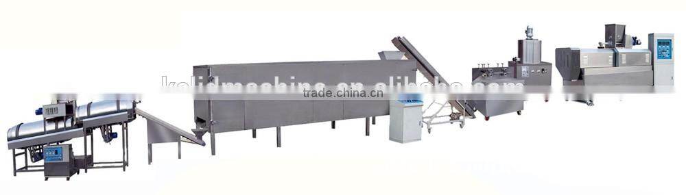 Mixer-Screw conveyor-Twin screw extruder-Air conveyor-Dryer-Flavor machine(Roller)-Cooling machine