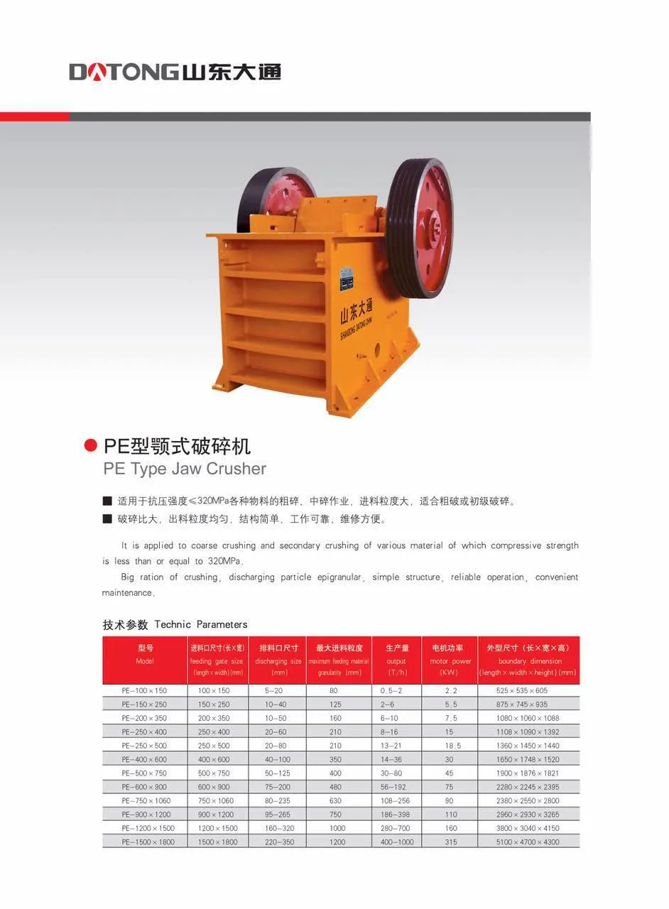The World's Most Famous Shandong Datong PE Type Jaw Crusher Products