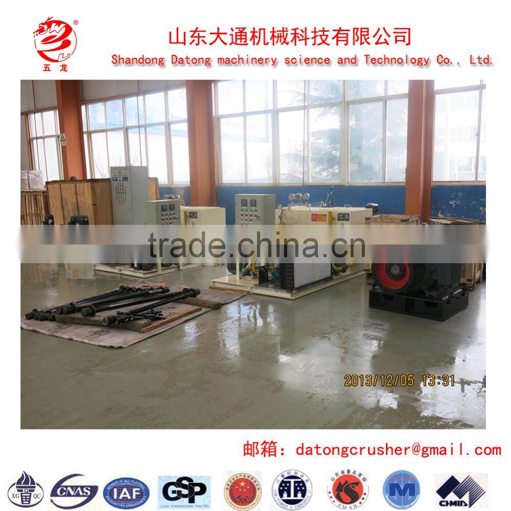Theelectric motor drives the eccentric shaft by belt pulley to make moving jaw toothed plate move upward and downward, so as to push the moving jaw toothed plate to the fixed jaw toothed plate, to crush the material or splitting the material by doing reciprocating motion of approaching and leaving.