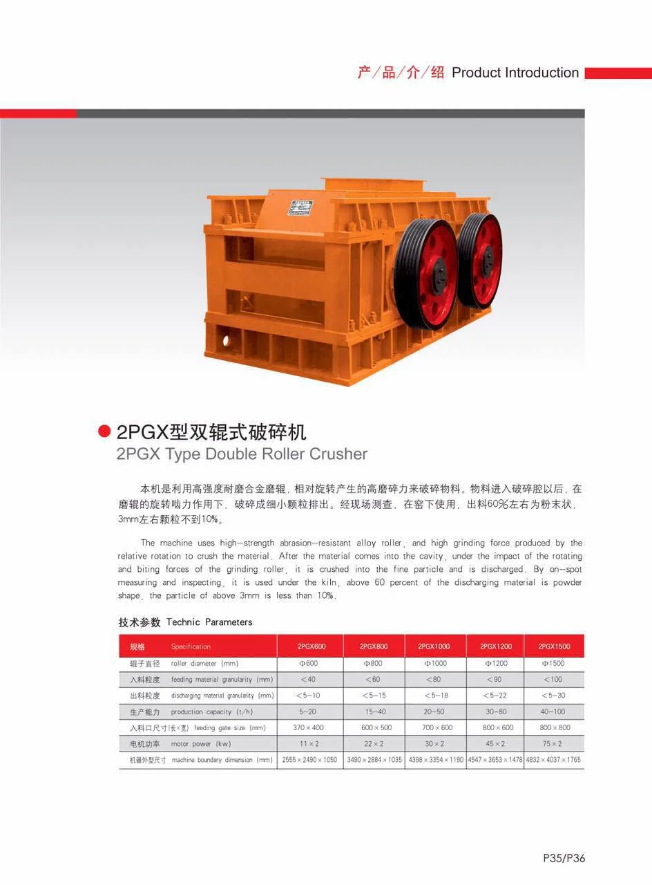 Name:2PGX1000 Type Double Roller Crusher
