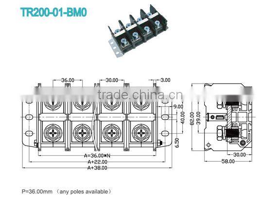 High Current Terminal connectors Pitch 36.0mm 600V 200A Power terminal block screw terminal block connector