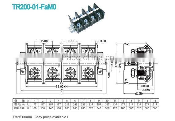 High Current Terminal Connectors Pitch 36.0mm 600V 200A Power Terminal Block Screw Terminal Block Connector