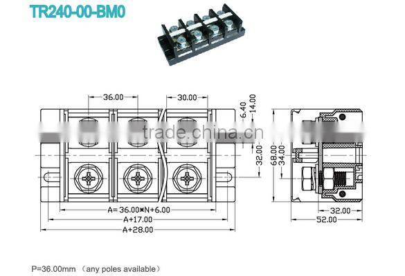 High Current Terminal Connectors Pitch 36.0mm 600V 240A Power Terminal Block Screw Terminal Block Connector