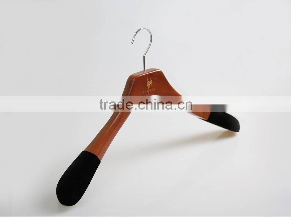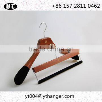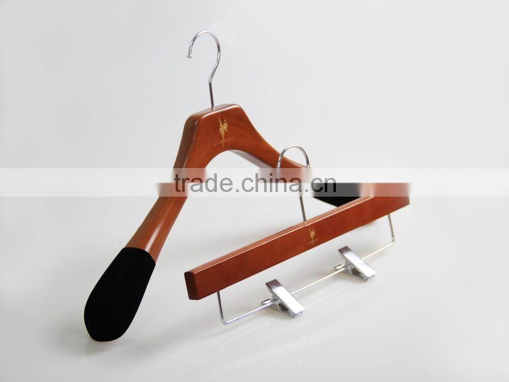 High End Brown Wooden Hanger and Pants Hanger With Anti-slip Velvet