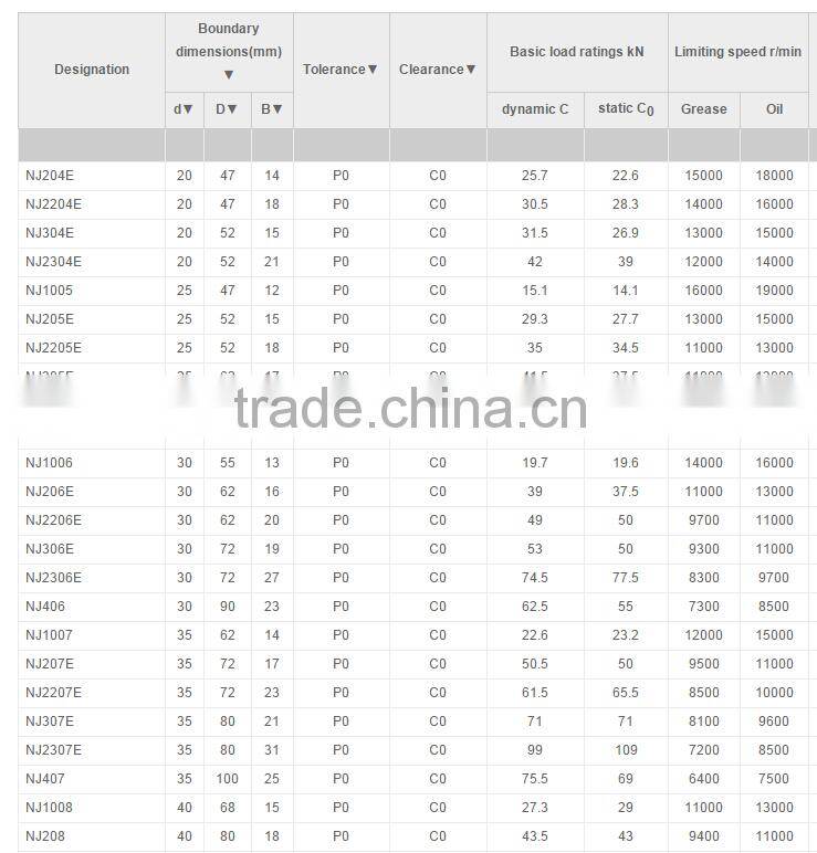 - NJ0000 NJ design single row NJ design single row cylindrical roller bearings, with double ribs on outer ring and single rib on inner ring